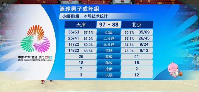 天津队实力不算强,队内既没有像廖三宁这样的明星后卫,也没有范子铭、翟晓川这样的前国手锋线,在整体实力不如对手的前提下,天津队发挥了极强的主观能动性,把投篮技术发挥到了极致,在篮板球完全被打爆的情况下,天津队以极好的失误控制率(全场仅3失误)和极高的三分球投射(22中11),全场6人主力轮换,在第三节一度落后13分的情况下硬生生靠着三分从北京队手中抢走胜利。