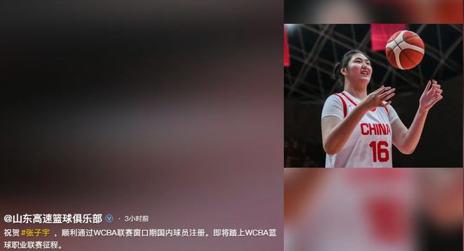 山东高速官宣:张子宇通过窗口期注册 最快1月4日迎WCBA首秀