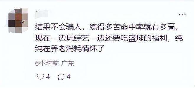 “现在一边玩综艺一边还要吃篮球的福利,纯纯在养老消耗情怀了。”