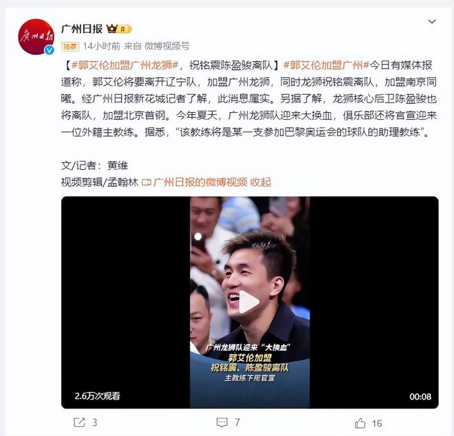 广州龙狮队最近发布的新赛季海报里,压根没出现郭艾伦的身影,海报上全是年轻队员的面孔。