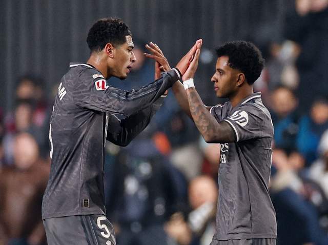 皇马(4231):库尔图瓦/阿诺德、米利唐、赫伊森、卡雷拉斯/卡马文加、居勒尔/巴尔韦德、贝林厄姆、维尼修斯/姆巴佩