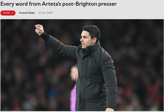 阿尔特塔出席了赛后新闻发布会,我们来看看阿森纳主帅的发言。