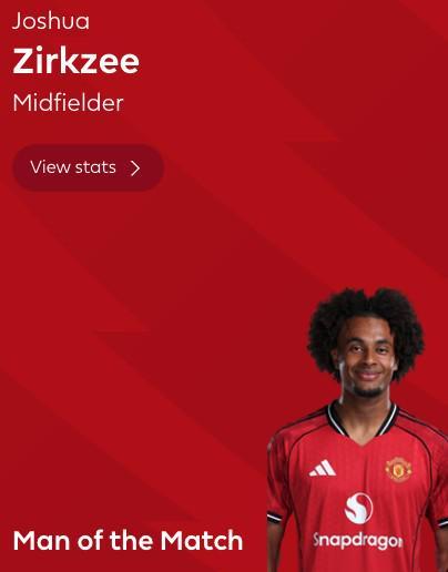 首开记录,齐尔克泽当选曼联vs狼队全场最佳球员
