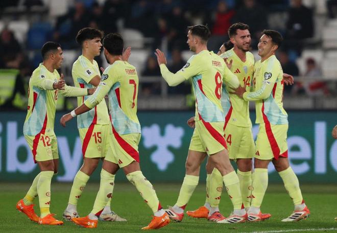 11月6日凌晨,2026世界杯欧洲区预选赛继续进行,E组一场焦点战,西班牙奔赴客场对阵格鲁吉亚。此役身价2亿的亚马尔缺战,伤兵满营的西班牙依然强势,奥亚萨瓦尔2射1传,费兰-托雷斯传射,西班牙4-0横扫对手,豪取5连胜!